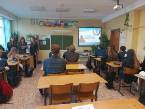 Так же девочки рассказали о своем ВУЗе и факультете, на котором получают образование, о выпускниках института права. Десятиклассники смогли задать вопросы, которые у них возникли в ходе общения.